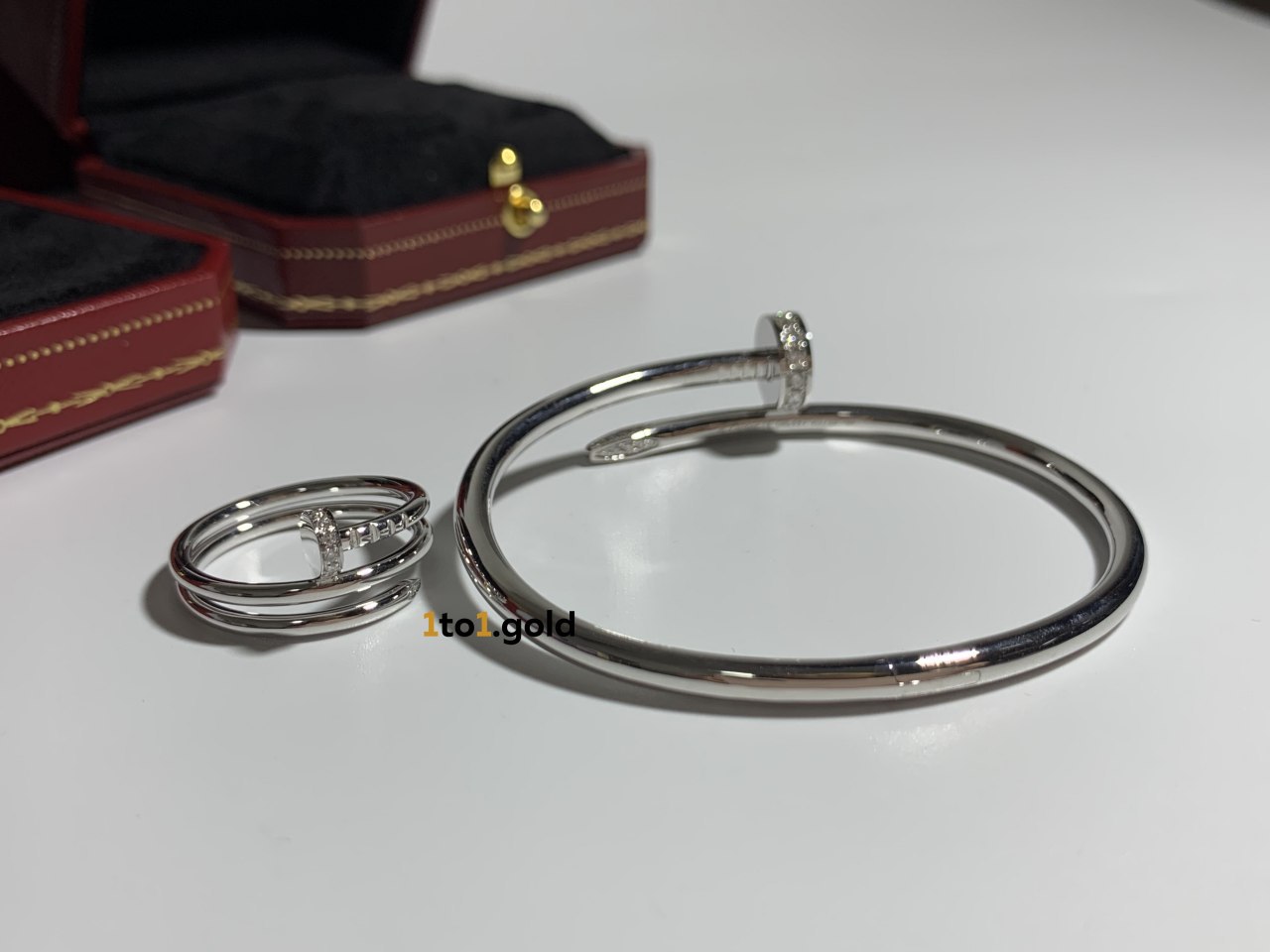 Реплика Браслет и кольцо Cartier « Juste Un Clou» из белого золота с бриллиантами на конце из Китая — отзывы